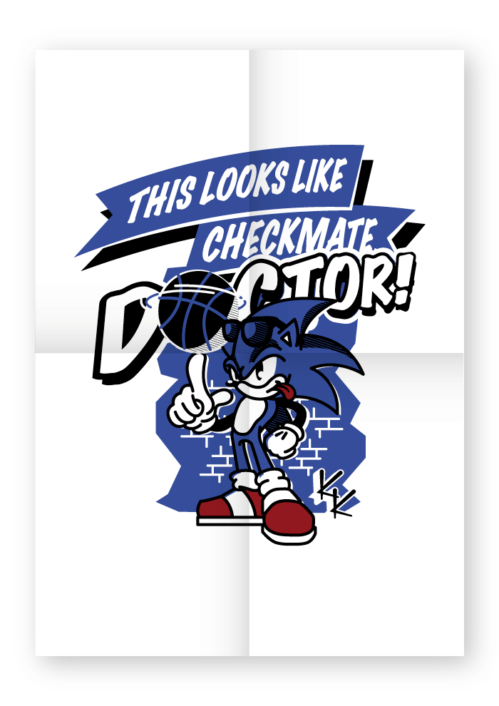 Being an 80’s/90’s kid I’ve always found myself going back to my youth and the imagery that was popular at that time. Sonic and Knuckles both impressed upon me quite heavily through the want for there games(that I could never have, thanks mum and dad) and the small glimpses I got of the world from friends houses, comic books and later the animated series. Lucky for me I was a coordinator for “Totally 90’s” a(yes you guessed it) 1990’s inspired artshow. So as a couple of my many submissions I included “Sonic” + “Knuckles”, otherwise known as “Checkmate, Doc” and “Knuckle Up, MuthaF#!KA”.